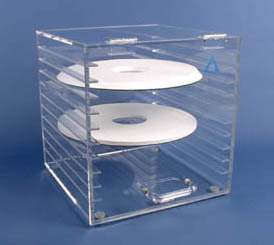 The Rotor Desiccator–Storage Chamber is designed for the organized, moisture-controlled storage of silica gel rotors for the CycloGraph or Chromatotron. The chamber is constructed from clear acrylic for visibility and durability, allowing easy identification of stored items without opening the enclosure.